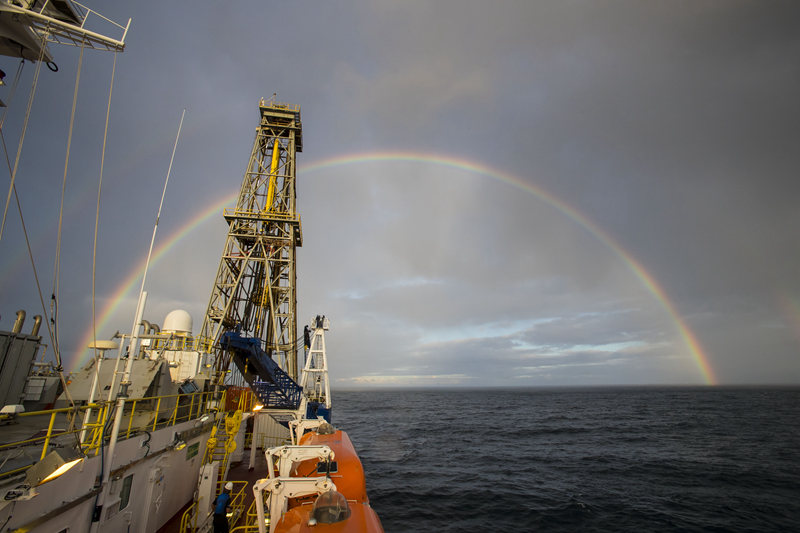 大洋钻探期间海上升起双彩虹(Photo credit: T. Fulton)