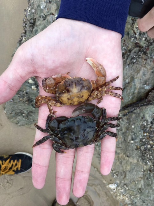 第二站来到连云港海边,带领学生们接触海洋及潮间带生物。采集海水样品及潮间带动物并分类,使同学们初步了解了潮间带生物野外调查的流程。期间有幸采集到了一些正在蜕壳的肉球近方蟹,同学们纷纷围观并录制视频,将课本知识和实践相结合。同时同学们还了解了紫菜养殖、潮汐规律等海洋知识。