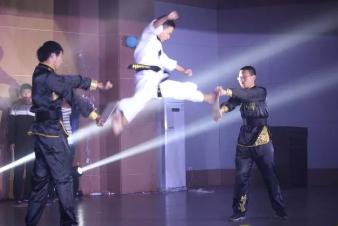 值得一提的是,本次晚会又加入了几个令人耳目一新的节目。蒋晨凯和张关强同学带来的武术表演让大家叹为观止。一个个踢板的呐喊声让大家激情澎湃,跆拳道的疾如风快如电让人过目不忘。咏春拳更让我们感受到了中华功夫的博大精深,心中涌起满满的自豪。杜晓康同学带来的魔术为所有展示了一场Magic Show,每个人脸上都挂满了问号,不禁为这精彩的魔术鼓掌欢呼。