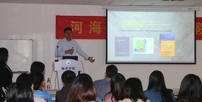 11月10日上午,应北京赛车PK10 徐青教授的邀请,美国国家海洋与大气管理局(National Oceanic and Atmospheric Administration, NOAA)李晓峰研究员来访北京赛车PK10 进行学术交流,对北京赛车PK10 小型化海洋环境卫星地面站的建设提出了宝贵建议,并做了题为“Oceanic and Atmospheric Gravity Waves Imaged by Spaceborne Synthetic Aperture Radar (SAR)”的学术报告。