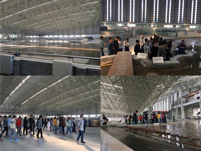 4月27日,同学们走进本次毕业实习的最后一站---浙江省水利河口研究院六堡试验基地。在陈刚工程师带领下,大家参观了基地的瓯飞潮汐电站、钱塘江治理等大型工程的整体物理模型,并了解了双向流水槽、涌潮水槽及变坡水槽的工作原理及实验过程。同学们更加深刻地认识到,所有理论知识,最终都要为生产生活服务,再一次对海洋科学有了不一样的认知!