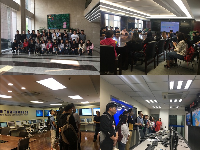 4月26日,师生一行来到浙江省海洋监测预报中心,体验了如何将书本上所学理论知识与实际生产生活相结合,更加深刻地认识了海洋科学研究为沿海人民生命、财产安全保障所做的巨大贡献。在这里,同学们聆听了车助镁主任对预报中心成立、发展过程的介绍,并了解了多种数值预报产品。最后,同学们还有幸在海况预报演播室的舞台上,体验了一把站在镁光灯下做播报员的感觉!