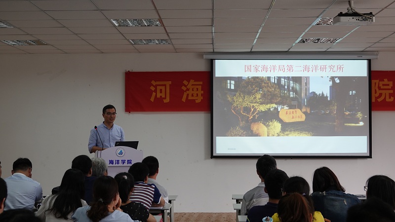 最后,各学科导师对研究方向及科研成果进行了精彩介绍,本次会议的特邀导师周锋研究员,代表国家海洋第二海洋研究所也向大家介绍了二所的概况。导师们通过精彩的陈述,使晦涩难懂的专业知识显得妙趣横生,令同学们初次体会到科研的魅力所在。相信在雄厚的师资力量的带领下,同学们会在未来取得瞩目的成绩。