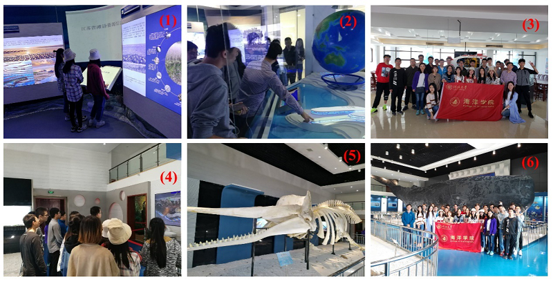 下午同学们参观了位于如东县的江苏滩涂馆和香鲸馆。在滩涂馆,同学们了解了有关滩涂的形成、数量、分布及开发利用,中国历代江苏滩涂的变迁以及滩涂保护等相关内容。在香鲸馆,同学们见到了一只搁浅的抹香鲸标本及其骨骼标本,并通过视频了解了抹香鲸沙沙从搁浅到标本制作完成的整个过程。通过近距离观察抹香鲸标本,加深了同学们对其体型以及身体结构的直观认识。