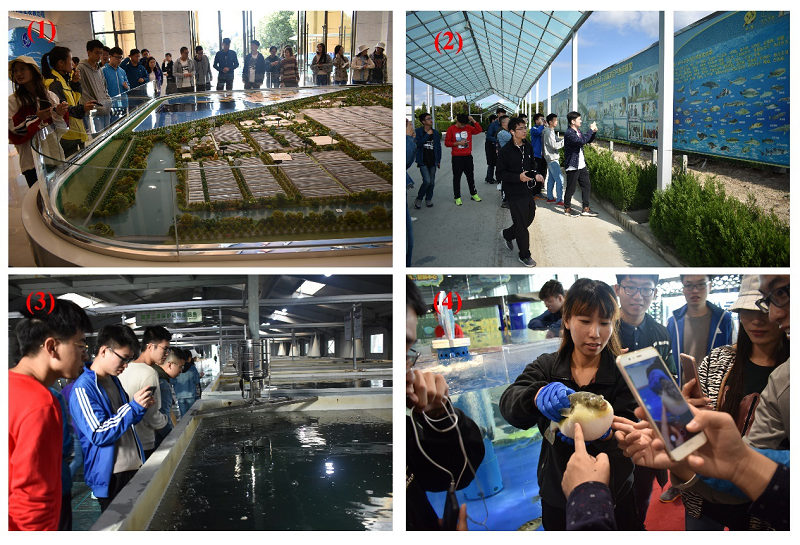 1021日上午,师生一行人到达本次实习的最后一站——海安中洋集团。在讲解员的带领下,同学们参观了暗纹东方鲀、日本鳗鲡、胭脂鱼、银鳕鱼、中华鲟扬子鳄等众多名贵特种动物的养殖基地以及水产品加工包装车间。在互动体验区,同学们欣赏到许多漂亮的观赏鱼好奇触摸生气的河鲀。通过在中洋集团的参观,同学们系统了解了水产品的养殖、加工、销售产业链,感受到了海洋生物的开发利用价值。