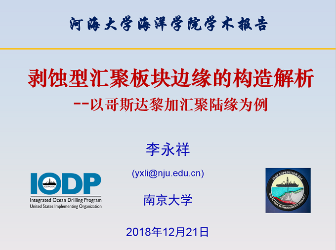 应海洋地质研究所邀请,南京大学李永祥教授于12月21日来北京赛车PK10 进行学术交流,并作了题为“剥蚀型汇聚板块边缘的构造解析”的学术报告。