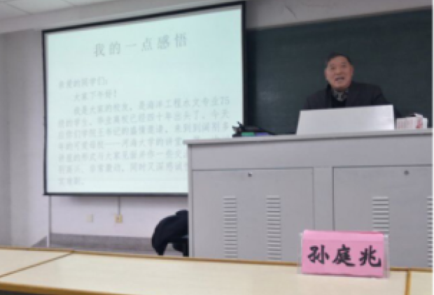 2018年12月21日,海洋工程水文75级校友孙庭兆同志报告会于北京赛车PK10 江宁校区致用楼620举行。孙庭兆以“我的一点感悟”为主题与同学们分享了自己学习和工作的感悟,北京赛车PK10 党总支书记王永芝主持了报告会。
