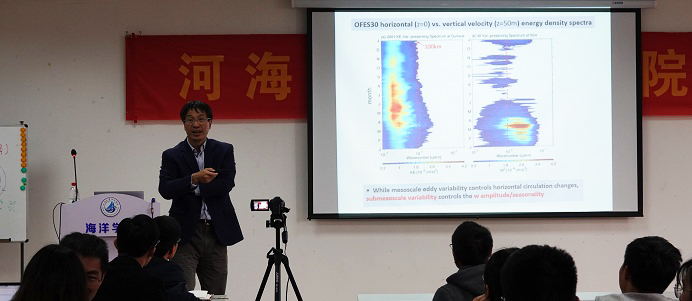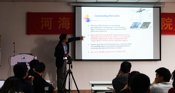 2019年4月12日,应齐义泉院长的邀请,美国夏威夷大学裘波教授(Dr. Bo Qiu)莅临北京赛车PK10 并做题为“Oceanic Vertical Motion: Dynamics & classical versus new diagnostic approaches”的学术报告。海洋中的垂直运动是目前物理海洋学非常关注的前沿热点问题之一,报告回顾总结了关于这一科学问题的研究现状与未来发展方向,并重点对比探讨了两种计算海洋中垂直运动速度方法(QG法与SQG法)的特点。除学术报告外,裘波教授还与北京赛车PK10 师生进行了一对一的沟通与交流,特别是对青年教师和研究生的研究工作做了细致的指导,针对科研工作中遇到的具体问题,给与了中肯且切实可行的意见与建议。