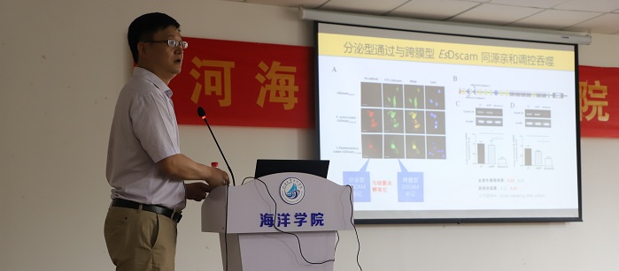 本次报告中,王群教授首先针对节肢动物门特有的唐氏综合症细胞黏附分(Dscam)基因转录过程中存在的可变剪切这一现象,从该功能基因在转录水平的分子多样性产生和调控机制以及在翻译水平其蛋白分子功能特异性这两个层面的科学问题展开报告。随后,王群教授以洄游性水生甲壳动物中华绒螯蟹为例,借助生物化学,细胞生物学和微生物学等手段,通过功能缺失和功能获得等实验手段深入解析了高度分子多样性Dscam其可变剪切异构体蛋白在该物种中的病原识别特异性,以及跨膜型和分泌型Dscam蛋白通过分子相互作用参与调控宿主吞噬病原微生物的分子机制。以上研究对于更好地认识无脊椎动物免疫防御机制提供了重要的基础,并为深入理解先天免疫系统在不同生物类群中的发展和演化机制带来了新的视角。报告后,王群教授与北京赛车PK10 师生对无脊椎动物先天免疫特异性分子机制和相关功能研究方法等问题进行了深入的讨论与交流,进一步促进了北京赛车PK10 师生对水生无脊椎动物免疫防御过程中的特异性识别和信号传导等分子机制的认识,开拓了师生们的学术视野。