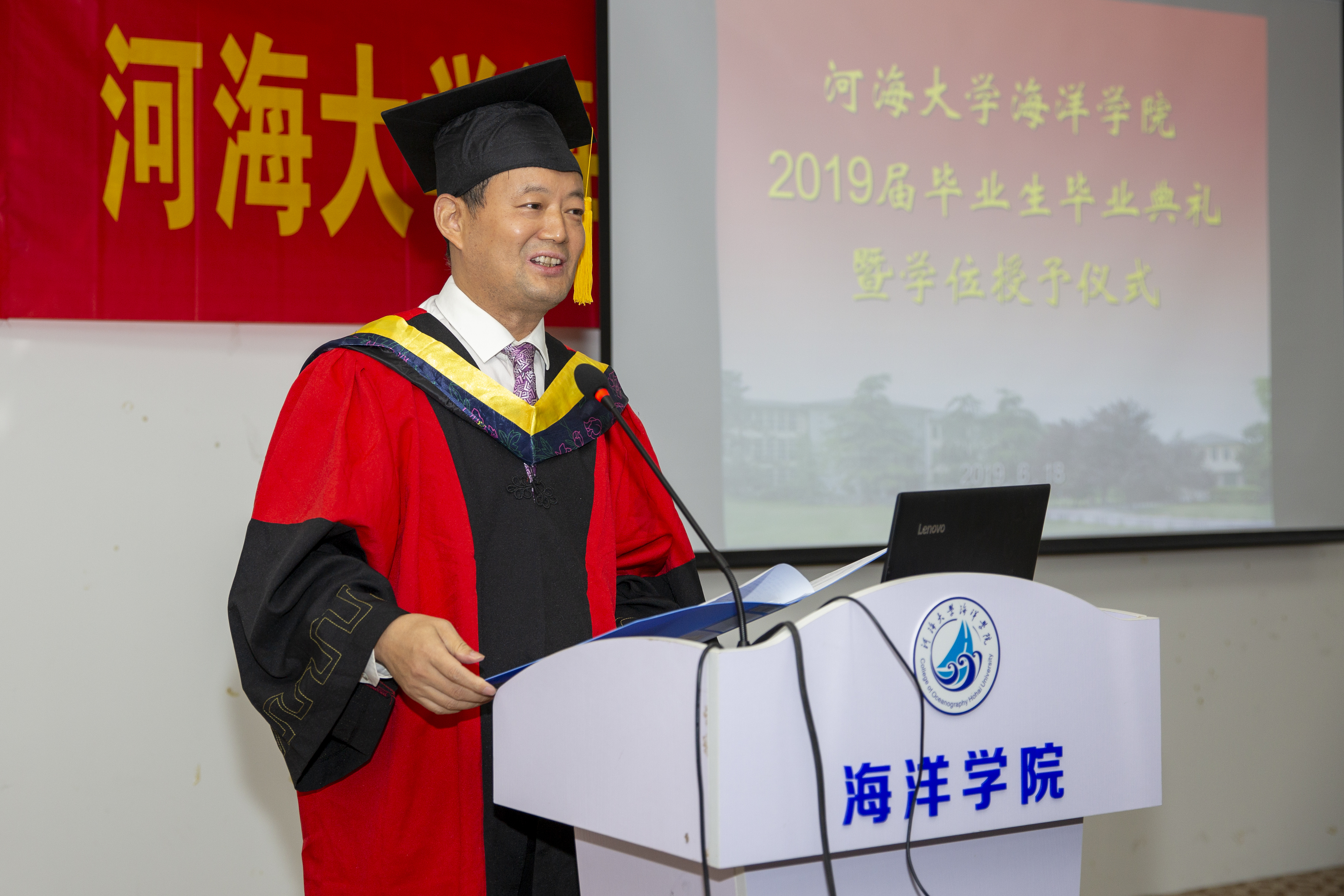 海洋院院长齐义泉教授作了题为《四年,我们一起走过,未来更加美好!》的典礼致辞,向各位毕业生同学表示热烈的祝贺,向为毕业生成长成才倾注无数心血的各位老师和家长致以崇高的敬意和诚挚的问候。齐院长说,四年来,我们教学相长,广大毕业生朝气蓬勃、奋发向上,谱写了自己人生中最华美的乐章,在挥洒青春精彩的同时,更为北京赛车PK10 赢得众多荣耀。伴随着大家的成长,北京赛车PK10 也乘着新时代的春风,取得了长足的发展。齐院长代表北京赛车PK10 向毕业生送去深深的祝福。