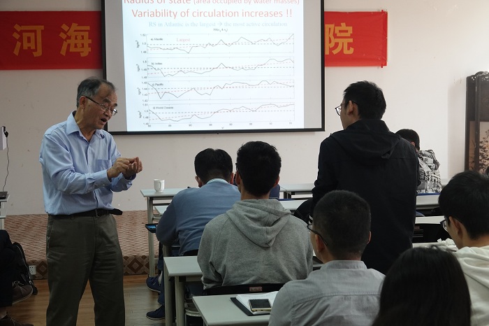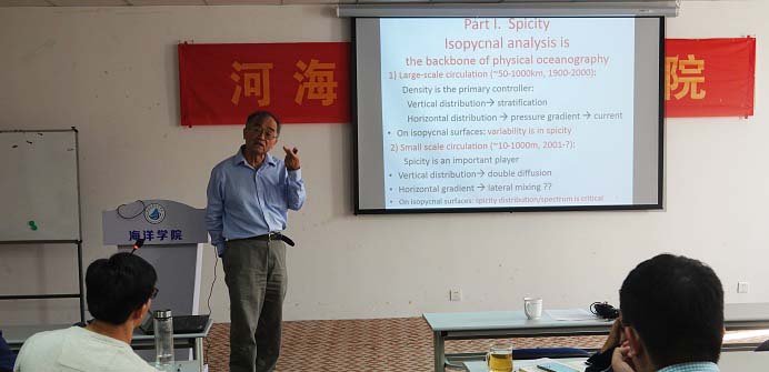 2019年11月5日,北京赛车PK10 召开了“海洋多尺度动力过程研讨会”。来自美国伍兹霍尔海洋研究所黄瑞新教授和北京赛车PK10 的50多名师生参加了本次研讨会。黄瑞新教授做了题为 “Density-Spicity coordinates: applications to water mass analysis/climate study” 的学术报告。报告中,黄瑞新教授介绍了海洋涩度的相关研究,提出了一种解决密度和涩度曲线不正交问题的方法,并指出了涩度在水团分析、海洋环流、海洋混合和气候变化等研究领域的应用前景。
