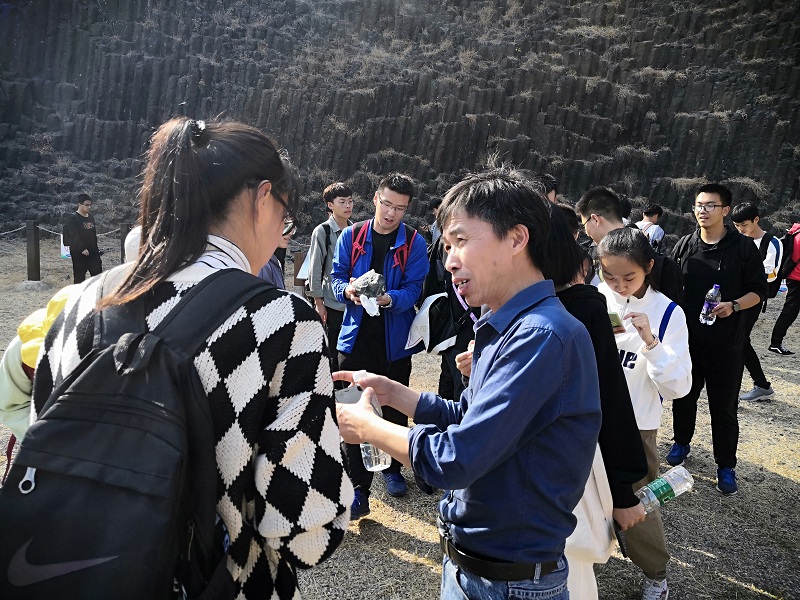 实习过程中,同学们在老师带领下,认真观察、记录,并提出很多问题。尤其是在桂子山地质公园,地幔包体引起了很多学生的兴趣,各位同学纷纷在玄武岩中寻找,并和指导教师讨论他们找到的地幔包体标本。