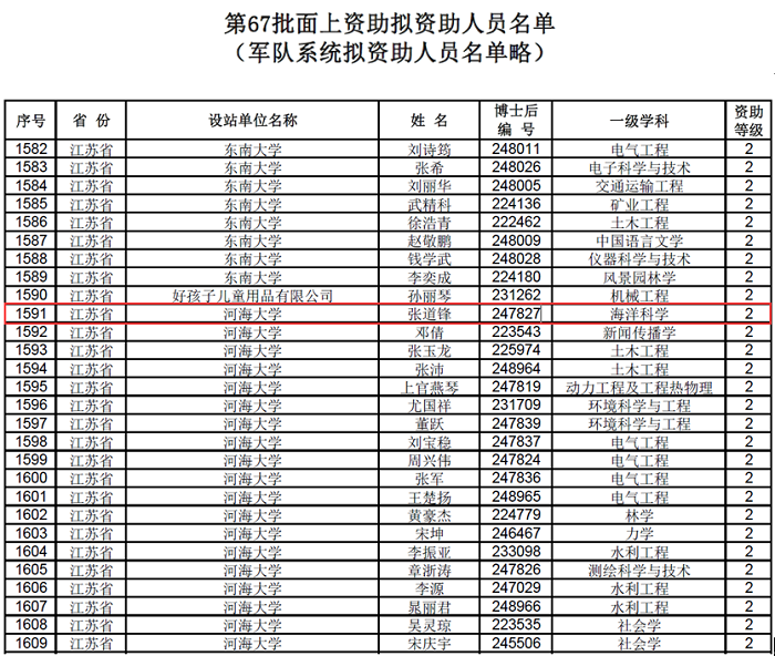 中国博士后科学基金会公示了第67批面上拟资助名单,北京赛车PK10 张道锋博士荣获二等资助。据悉,本批次面上一等资助仅用于“向与新冠肺炎疫情防控有关的博士后研究人员开展专项资助”中直接参与新冠肺炎一线救治工作的博士后研究人员。