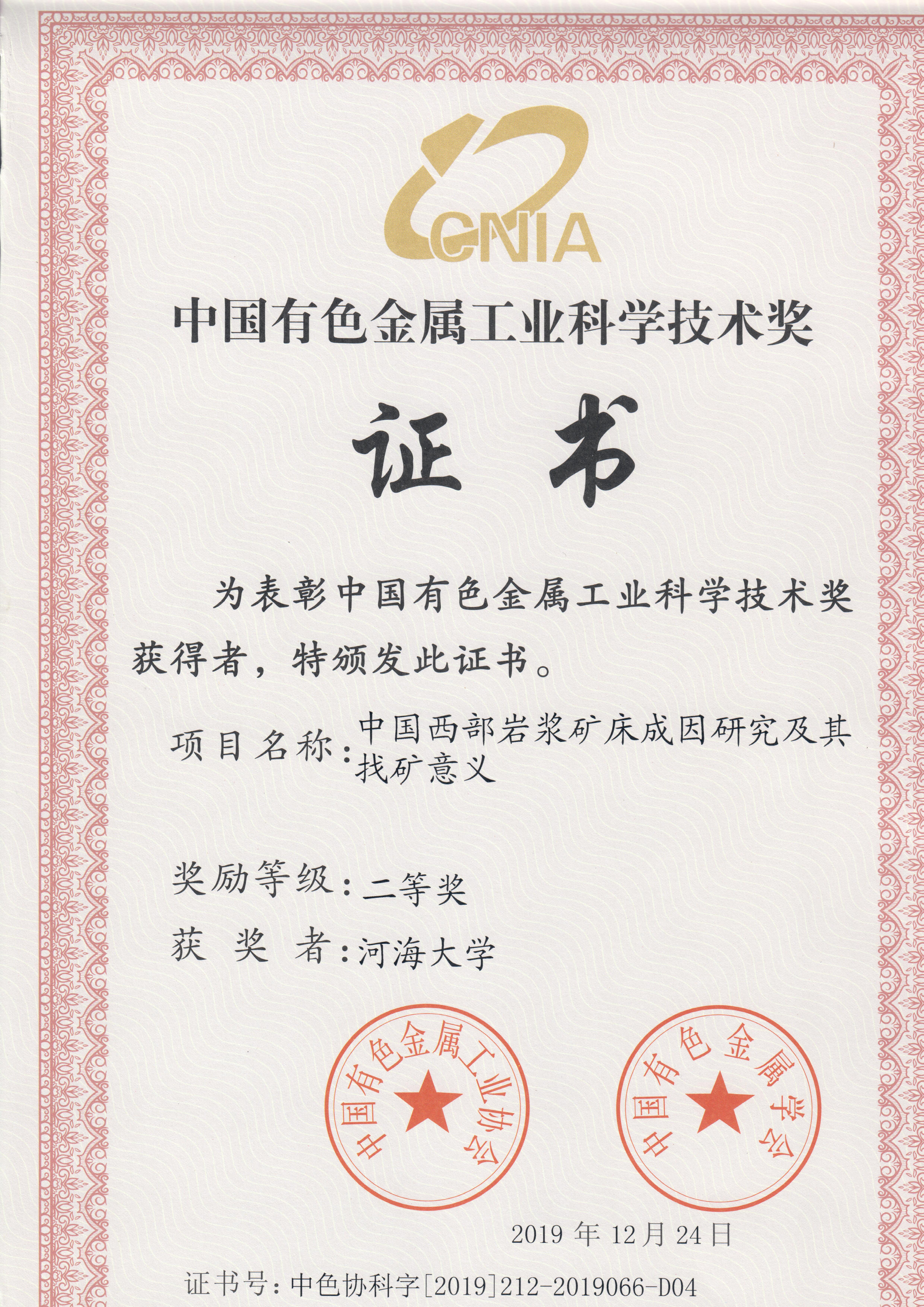 北京赛车PK10 颉炜副教授以北京赛车PK10 为第三完成单位参与中国科北京赛车PK10 地球化学研究所宋谢炎研究员牵头的《中国西部岩浆矿床成因研究及其找矿意义》项目,在岩浆通道成矿理论和高精度PGE分析方法、中亚造山带铜镍硫化物成矿规律、峨眉山大火成岩省岩浆成矿作用和扬子地块西缘中-新元古代岩浆矿床成矿规律等方面取得了很多重要进展,获得中国有色金属工业科学技术奖二等奖。