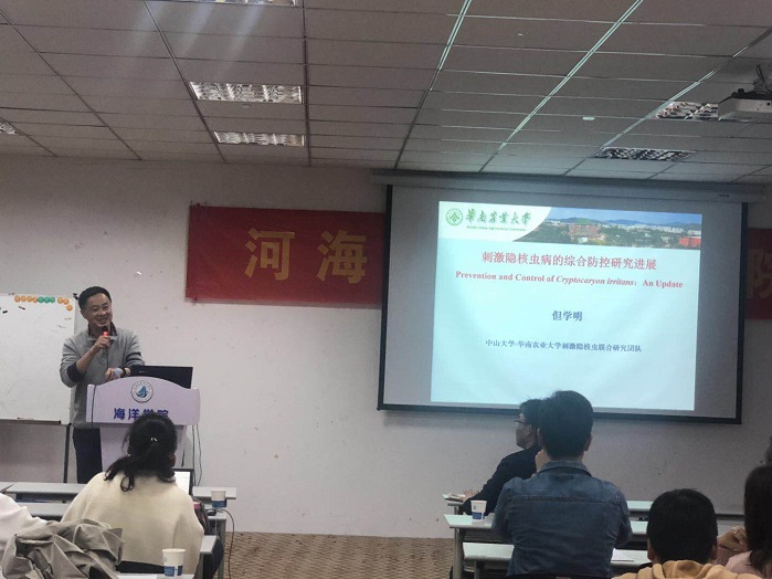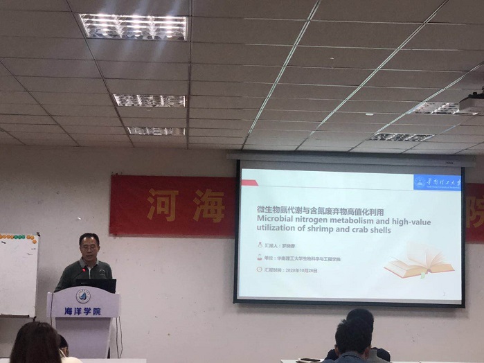 2020年10月23日,在北京赛车PK10 迎来建校105周年,北京赛车PK10 建院5周年纪念日之际,中山大学李安兴教授、华南农业大学但学明教授和华南理工大学罗晓春教授应邀做客北京赛车PK10 “海韵大讲堂”学术论坛,并分别作了题为“疫苗在鱼类疾病防控中的应用”,“刺激隐核虫病的综合防控研究进展”和“微生物氮代谢与虾蟹壳高值化利用”的学术报告。院内外共计80余人聆听此次报告。