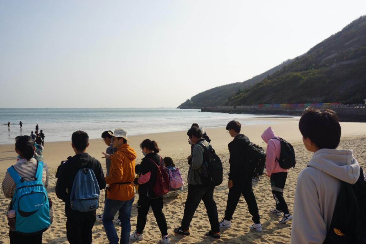 在实习结束之后,同学们卷起裤腿,在海边奔跑、拾取贝壳与海水冲刷的奇石头,宛如回到了童年。有些同学在海边发现了海螺、寄居蟹,让他们格外惊喜;有部分同学赤脚伸入海水中,迎着浪花亲身感受大海的魅力。在一片欢声笑语中,相信这次连岛海滨之行在同学们心中种下了对海洋的热爱,培养了同学们海洋的情怀。这种实践中学习的方式,让同学们受益匪浅。