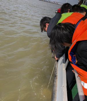 出于疫情期间安全考虑,本次实习在长江南京市段完成。本河段属于典型的感潮河段,水文特征较为复杂,水体环境与城市人口活动密切相关。本次调查选择在枯季天文大潮期间,调查潮汐对本河段水动力特征、泥沙输运、河流生态等的影响。师生们搭载测量168船只,分批对长江南京段进行定点和横断面观测。