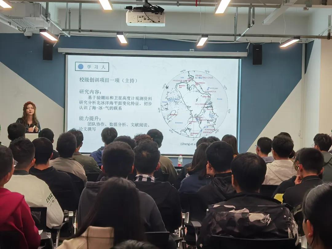 接下来的杨诗楷同学着重介绍了双学位的相关信息,“兴趣是最好的老师“便是她的金玉良言,同时庄重典雅的气质也激励了场下许多同学上进的心。