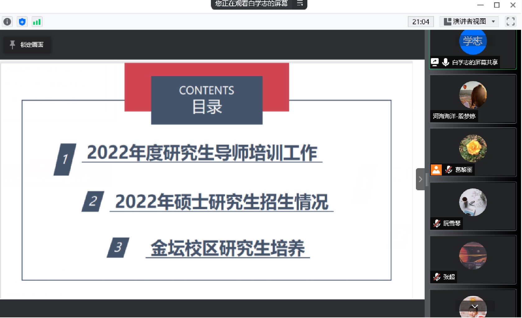 副院长白学志传达了北京赛车PK10 关于2022年度研究生导师培训的要求,强调导师培训是加强导师队伍建设、提高培养质量的重要举措。之后介绍了北京赛车PK10 今年硕士研究生招生总体情况,并就报考及录取生源进行分析,表示要继续加强宣传,提升学术影响力,多措并举努力吸引优质生源。