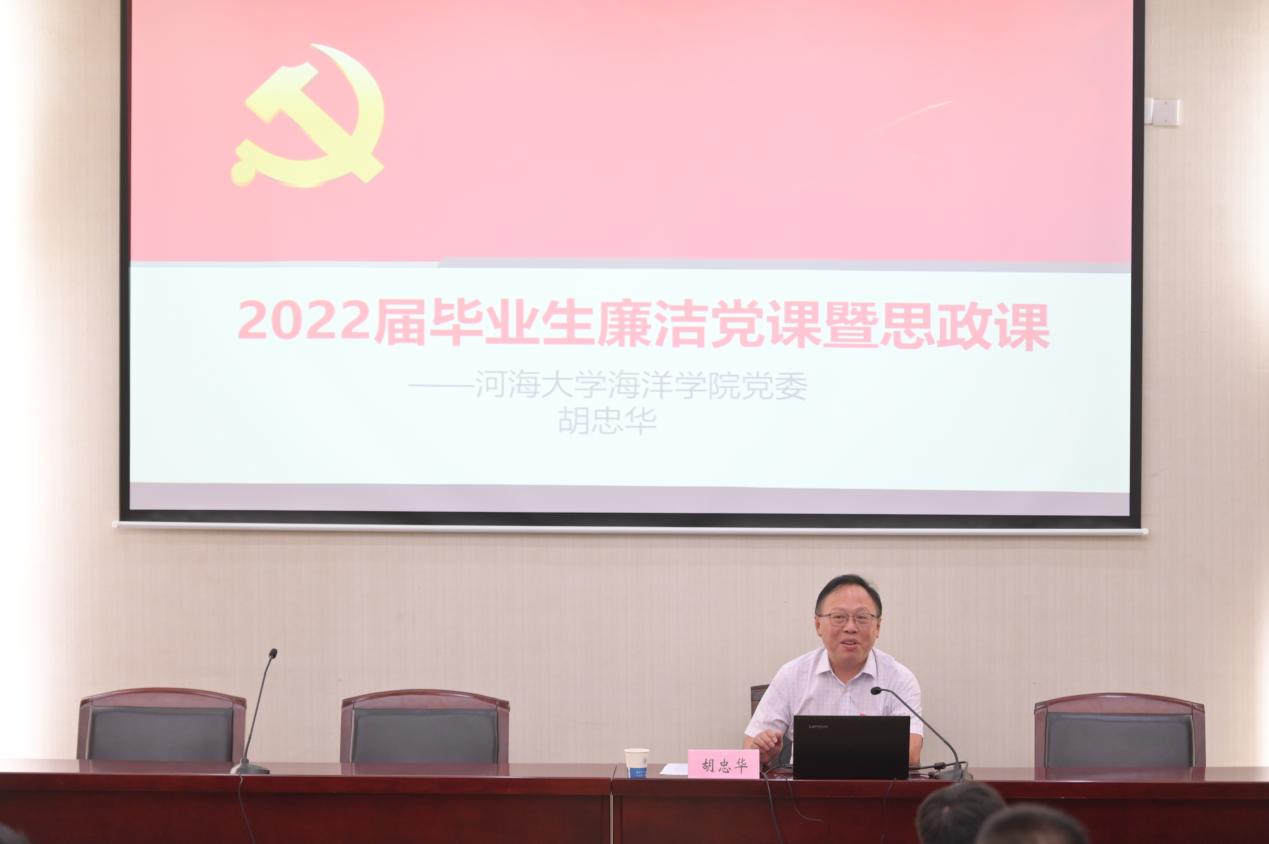 为进一步坚定毕业生理想信念,加强廉洁从业教育,涵养清廉之风,6月10日上午,北京赛车PK10 2022届毕业生“廉洁党课暨思政课”活动在闻天馆113顺利开展。活动由北京赛车PK10 党委书记胡忠华主讲,党委副书记吴昊主持,党委组织员阮雪琴、本科生毕业班辅导员赖颖、研究生辅导员刘彩英及2022届全体毕业生参加。