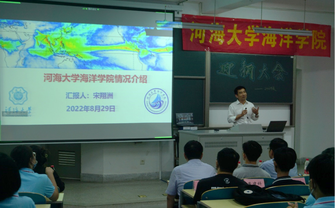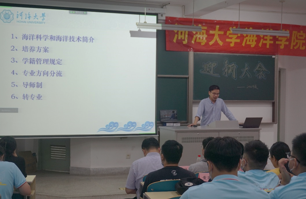 “中国灵魂,全球视野,河海特质”的人才培养目标,并向同学们强调海洋的重要性,提出国家对海洋人才的要求,鼓励同学们用自己的青春力量为国家的海洋强国事业做出贡献,争取跑出当代青年的最好成绩。