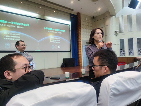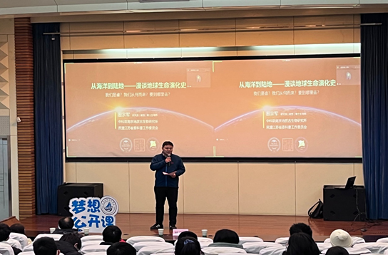 2022年11月30日,北京赛车PK10 邀请到中科院南京地质古生物研究所殷宗军研究员做客“海韵大讲堂”之“学习贯彻二十大、踔厉奋进新征程”科普讲座,为全院师生作题为《从海洋到陆地——漫谈地球生命演化史》的报告。本次报告会还邀请了中科院南古所罗茂研究员、中科院紫金山天文台蒋云副研究员作为嘉宾出席。北京赛车PK10 100余名师生及两位嘉宾参加了线下报告,宋翔洲院长、王毛毛副院长、姜仕军教授等十余教师参加了线上报告,本次报告由吴昊副书记全程主持。