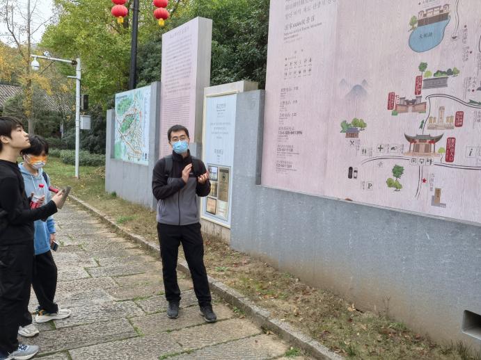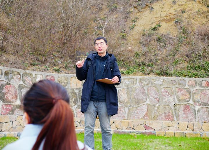 张鹏辉老师为同学们讲解阳山碑材实习区历史及考察路线