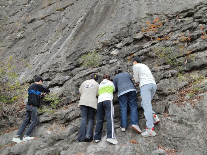 纵然天气渐冷,但也抵挡不住一颗颗炽热的心。在本次的普通地质学实习中,同学们在三位带队老师的指导和鼓励下,独立完成了实习用具的规范操作、野外实习记录、学习并掌握了野外地质观察的基本技能和方法。在大家眼中,美丽的自然风光下隐藏着沧海桑田的故事,需要有一双专注的眼睛、一颗满怀热忱的心,去倾听、去了解、去感受。相信此次实习经历一定会深刻烙印在同学们心中,为未来的学习和科研埋下一粒种子,期待有一天破土而出,茁壮成长!