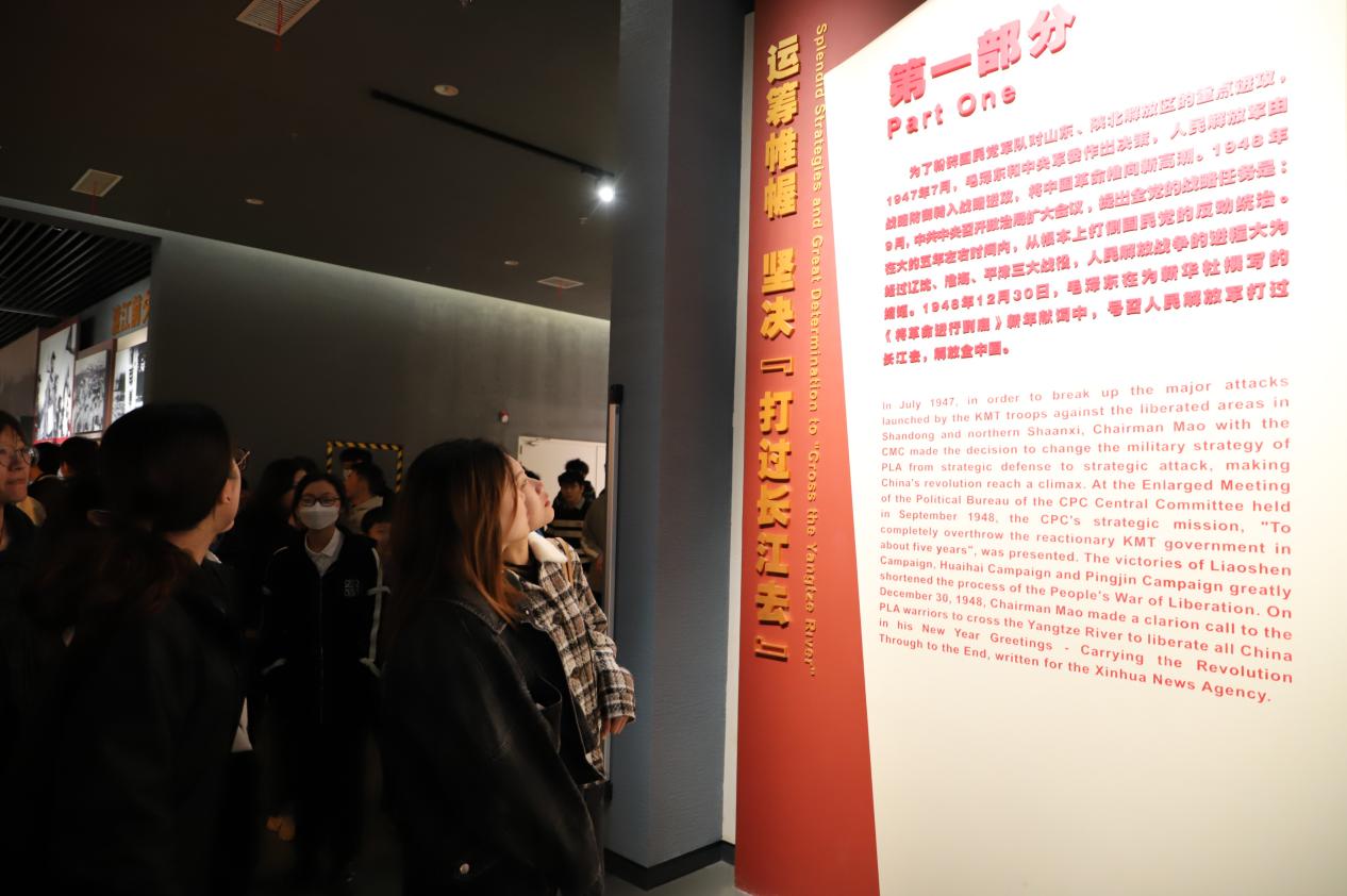 渡江战役的胜利和南京解放,是中国共产党领导人民书写的伟大革命的恢宏篇章渡江战役蕴含的革命精神与红色精神在今天仍旧意义非凡。渡江战役胜利70多年,“将革命进行到底”的渡江精神历久弥新,是激励莘莘学子勇往直前,不断推进中国特色社会主义伟大事业,实现中华民族伟大复兴的强大动力。