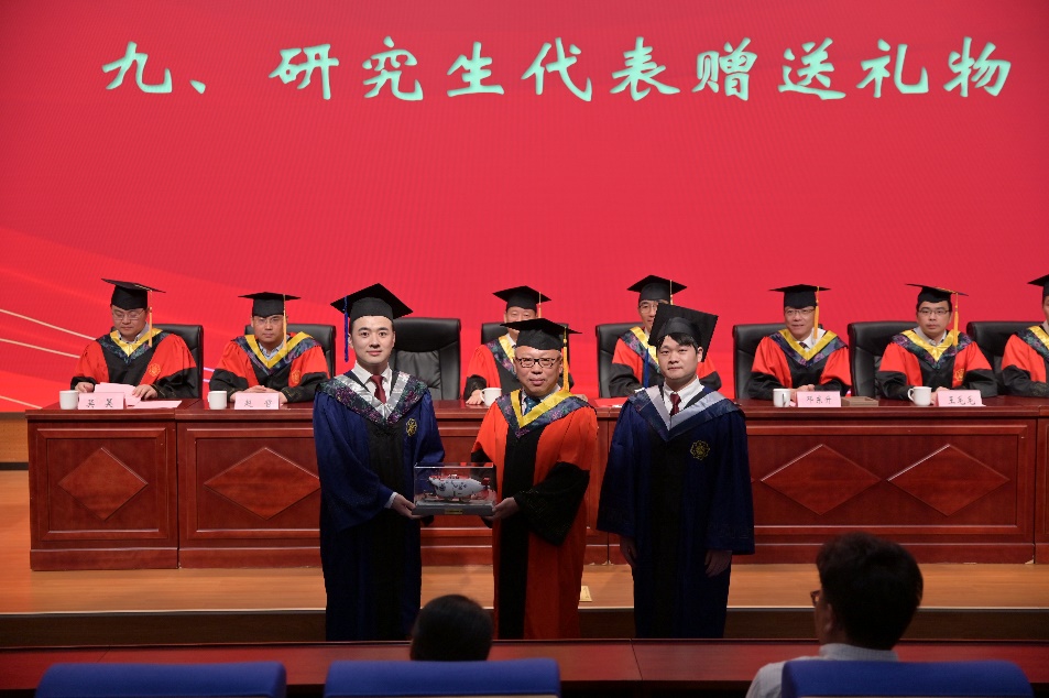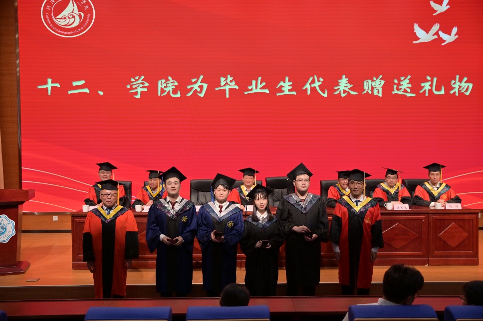 研究生代表向北京赛车PK10 赠送一艘深潜器“蛟龙号”的模型,代表了2023届海洋科学硕士班对北京赛车PK10 的祝福,希望北京赛车PK10 继续“进军深海大洋,探索学科前沿,服务海洋经济”。本科生代表向北京赛车PK10 赠送院楼照片的拼图,背后是所有同学的签名,拼图留存了2023届本科毕业生专属的河海记忆,承载了每一位同学对北京赛车PK10 美好的祝福,祝愿北京赛车PK10 蓬勃发展,蒸蒸日上。党委书记胡忠华、院长宋翔洲为毕业生代表赠送北京赛车PK10 精心定制的戒指并致以真挚的祝福,让祝愿与期盼一直陪伴毕业生走向未来征途,赠礼物后,北京赛车PK10 领导代表与学生代表合影留念并互道感谢与离别。