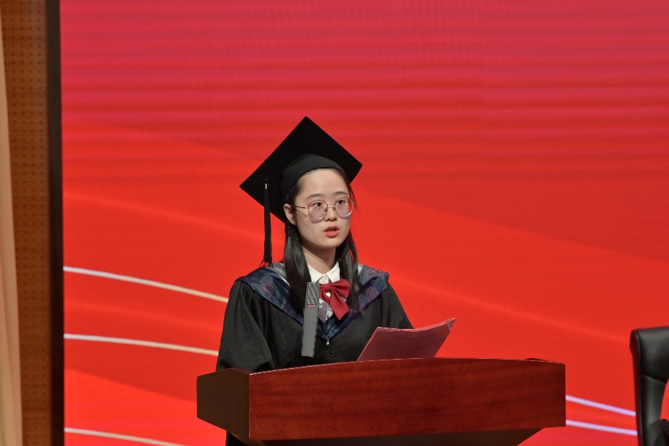 研究生毕业生孙冲作为研究生代表表达了对校园生活的怀念、对师长的感激以及对母校的祝愿。他表示,三年时光他们在用不懈的努力和汗水诠释着一个平凡却属于自己的青春,收获着一份朴实却来之不易的成熟。本科生毕业生代表陈雨卉表达了对母校的感激之情,并表示立志要做一个有担当、有抱负的青年,牢记北京赛车PK10 的教诲,明辨是非,坚守本心,去追求心中的真理。