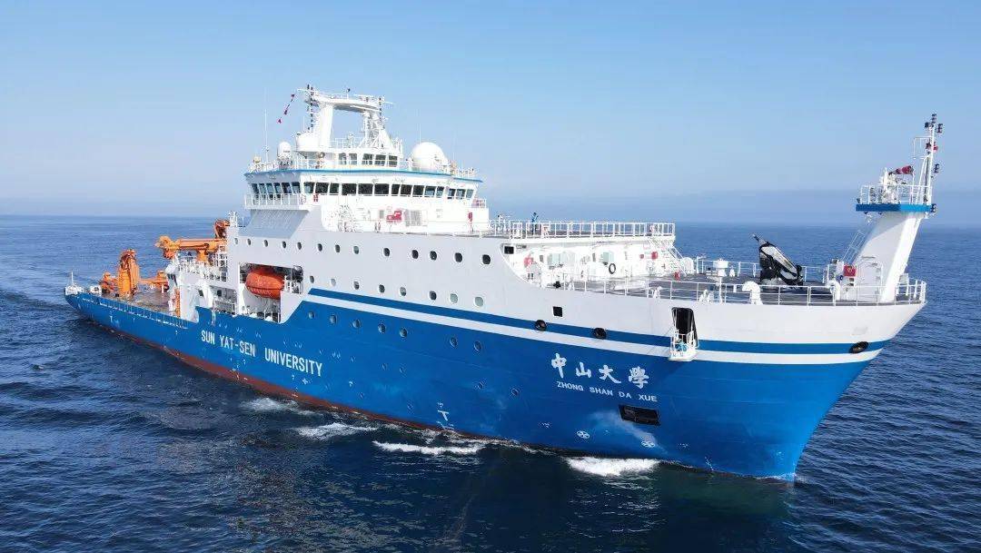 注:“中山大学”号科考船是目前国内设计排水量最大、配置高、能力强、创新技术高度集成、综合科考性最强的海洋科考船,具备全球航行能力且毗邻极地冰区作业的新一代大型海洋综合科考实习船,兼具科学考察和人才培养双重功能。