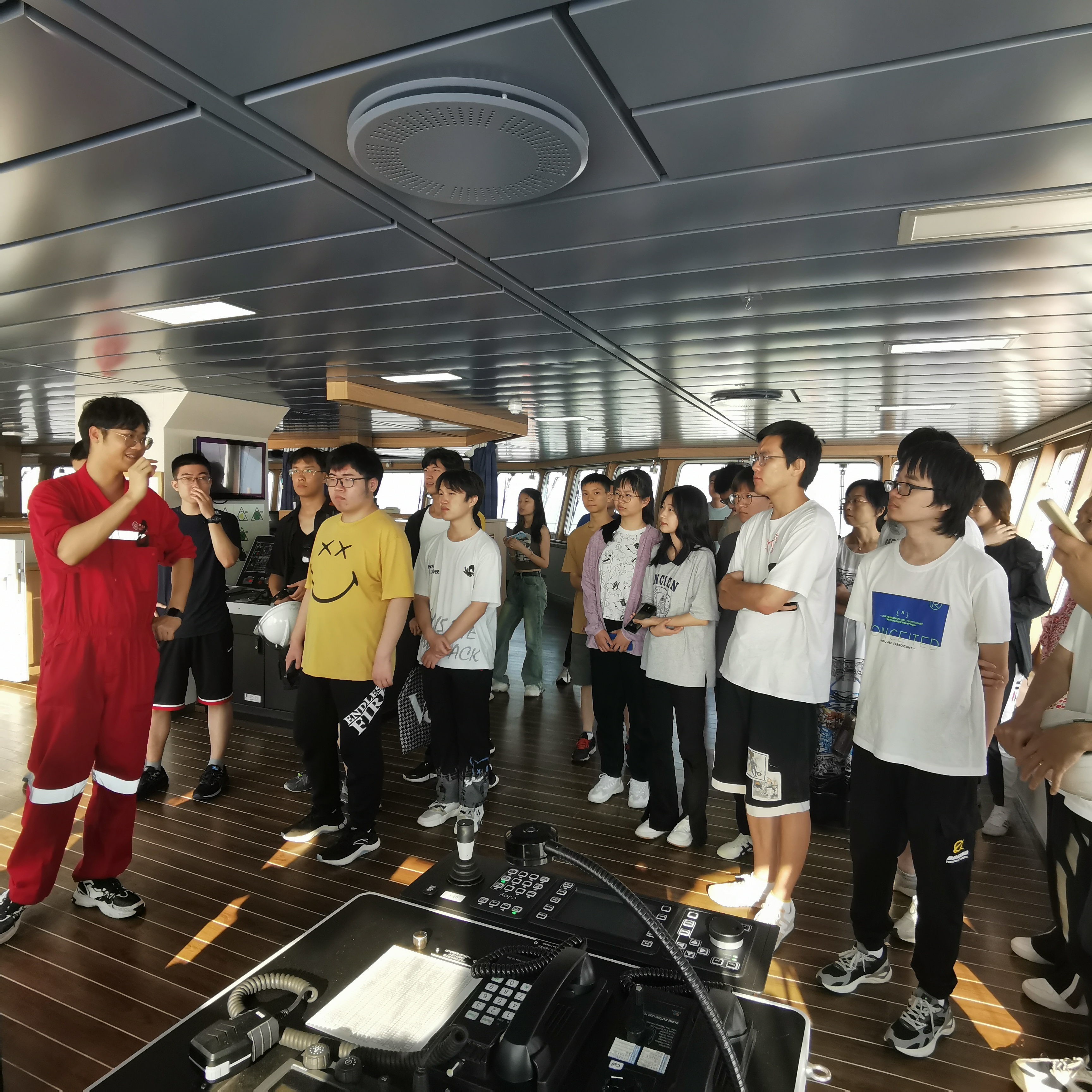 7月6日上午9点,北京赛车PK10 师生在上海崇明岛由随船老师安排,有序地登上了“中山大学”号科考船。中山大学及相关单位高度重视本次海上科考实习,航行前董文杰(首席科学家)、于卫东(科考中心主任)、蓝明华(船长)、常越(领队)、崔廷伟(执行首席)等人为参航师生召开航次动员大会,介绍本次海上实习背景、注意事项等。下午,科考船在船员紧锣密鼓的安排下驶出停泊港口,船队三副为参航师生进行了系统的安全培训,随后探测部工作人员带领参航师生分组参观“中山大学”号各层设施、实验室和驾驶室并介绍船上相关仪器设备,让大家近距离感受到了“中山大学”号科考船的先进以及船上工作人员的热情。