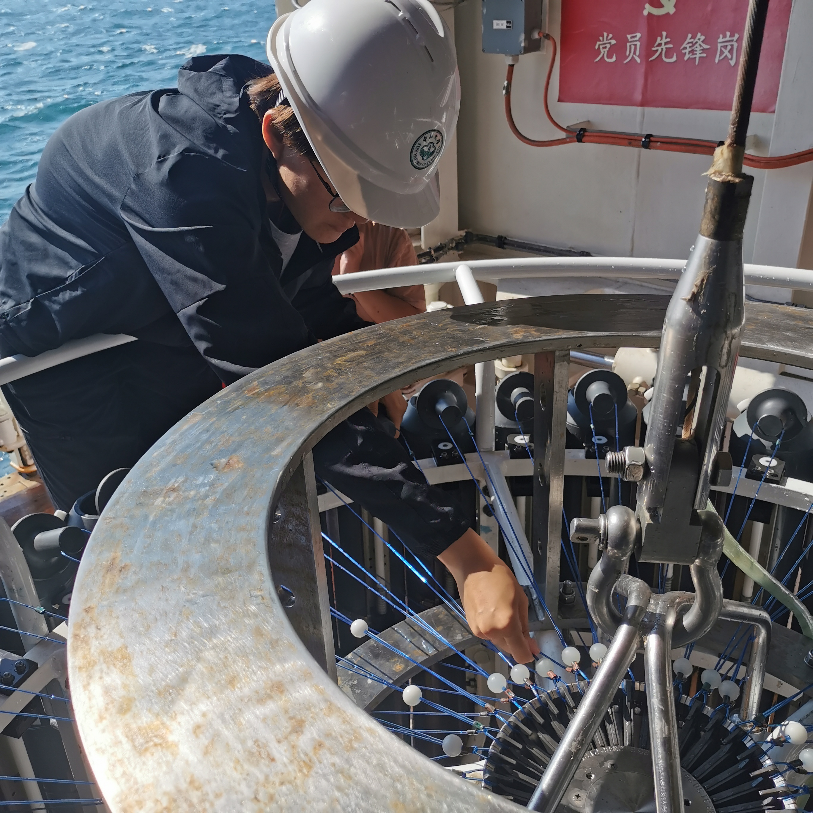 北京赛车PK10 同学下放海洋水色观测圆盘并进行CTD挂瓶操作