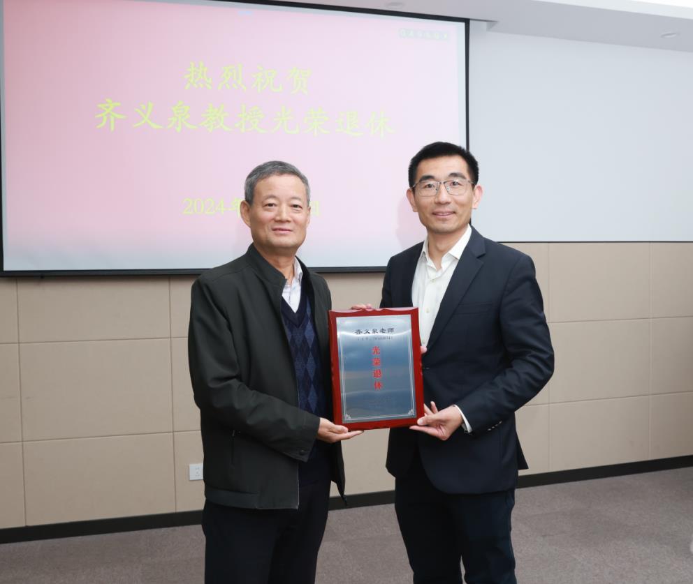 会上,宋翔洲院长为齐义泉教授颁发荣休牌匾,学生代表为齐义泉教授敬献鲜花,与会师生共同分享荣休蛋糕。