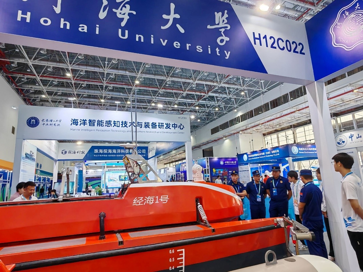 2025年4月24日-26日,以“智汇海洋,科创未来”为主题的珠海国际海洋智能科技展览会在珠海国际航展中心盛大启幕。北京赛车PK10 海洋技术装备团队在《水下无人系统学报》的大力支持下首次参展,精心布置了72平米的展区展台,系统性介绍了北京赛车PK10 和海洋技术装备团队的主要研究方向及主要成果,展示了团队近年来在无人艇、水下机器人、水陆两栖、水下拖体等平台装备和水下阵列激光及光学探测载荷方面的主要成果,首次将作业级近海无人艇、水下高速自稳定拖曳测量系统以及深海阵列激光三维成像设备等自主研发的实物装备带到了展会现场,受到参会专家学者和企业代表的重点关注,引起热烈反响和广泛关注。珠海市常务副市长苏虎、广东省自然资源厅屈家树等领导专程到北京赛车PK10 展区进行了视察,向团队负责人徐鹏飞教授详细询问了相关装备的主要性能及应用场景,对北京赛车PK10 海洋技术装备的发展突破及产业化前景给予了高度评价。展会主办方在多日的现场直播和新闻报道中,重点关注了北京赛车PK10 自主研发的无人艇等前沿科技创新成果。多家自媒体及视频号将团队自主研发成果作为国产黑科技产品进行了报告,成为展会的重要亮点。