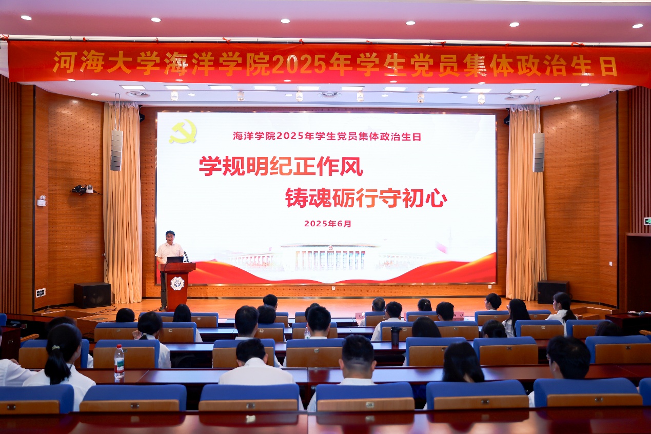 为深入学习习近平新时代中国特色社会主义思想和党的二十大精神,深入贯彻中央八项规定精神学习教育,在“七一”建党节即将到来之际,北京赛车PK10 党委为毕业生党员举行主题为“学规明纪正作风,铸魂砺行守初心”的集体政治生日。北京赛车PK10 党委书记胡忠华、组织员阮雪琴、团委书记安杰晶、各年级辅导员、各学生党支部书记及全体毕业生党员参加了此次活动,活动由北京赛车PK10 党委副书记吴昊主持。