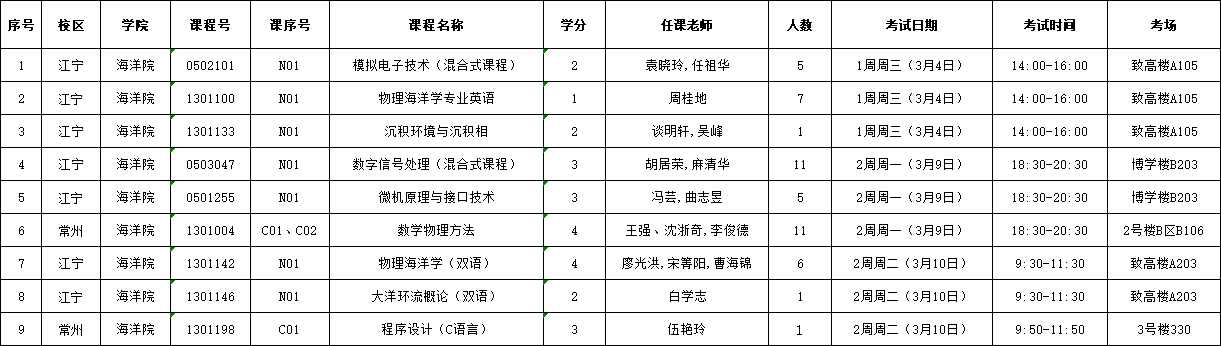 2025-2026-2学期海洋院专业课开学补考安排